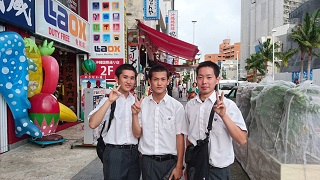 ↓津高生の笑顔は本当にいいものです。 | ↓国際通りを自主研修中です。 |