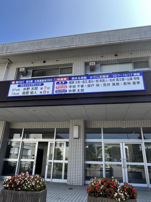 北海道インターハイの入賞選手と鹿児島国体に出場する選手の激励パネルが設置されました。