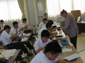 中間試験の終わったこの日、金沢少年鑑別所 金沢法務少年支援センター職員の方に来校いただき、「スマホ・ケータイ安全教室」を実施しました。