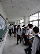 試験終了後には、各教科・科目の課題を提出するために、生徒は職員室前の指定場所を訪れます。写真は課題提出の生徒が詰めかけ廊下が混雑している様子です。生徒たちは部活に勉強に頑張っています。