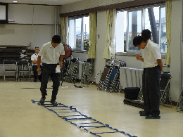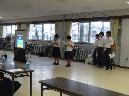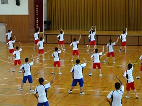 集団行動や津高体操などの演技を見てもらった後、高校の部活動を体験してもらいました。