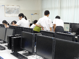 視聴覚室で学校の紹介を行ったあと、高校の授業を体験してもらいました。