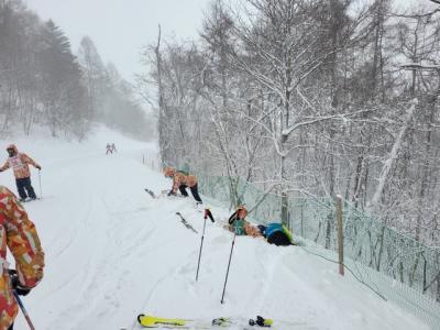 昼から天候が急変し、ホワイトアウトが起こりリフトが止まるなど環境はあまり良くありませんでしたがインストラクターさんの指導を受けながら、真剣に実習に取り組んでいました。