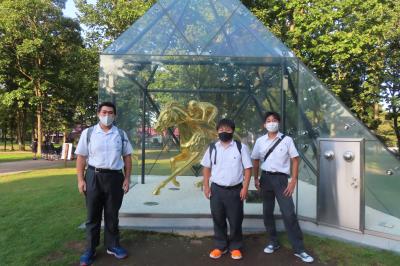 富山空港から飛行機に乗り、新千歳空港まで行きました。飛行機は初めてという生徒も多く、離陸の瞬間は悲鳴にも似た歓声が湧き起っていました。石川県は雨が降っていましたが、北海道は晴天に恵まれ、暖かかったです。