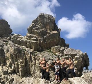 午後は21Hがシュノーケリングと浜辺の散策をしました。ゴリラチョップの岩で記念写真を撮りました!