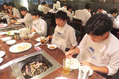夕食は「アサヒビール園羊々亭」にて、ジンギスカン食べ放題でした。昼間あんなにたくさん食べたのに、彼らの胃袋は宇宙なのでしょうか・・・ペロッと平らげていました。