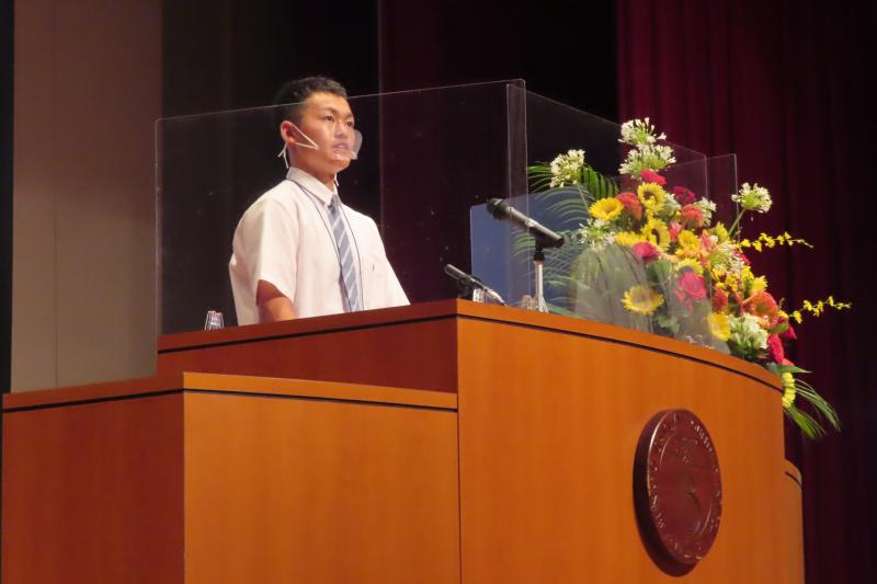最後は、文化委員長である3年生の桜井雅友さんが、お礼の言葉と花束の贈呈を行いました。
