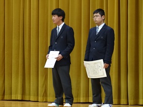 卒業式に先駆けて、高校生活において、部活や勉強等に成果のあった生徒たちに表彰状及び副賞が贈られました。