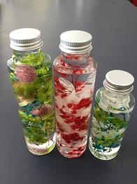 ガラスの容器に、お花を入れ、オイルで満たしたもの。 これです。