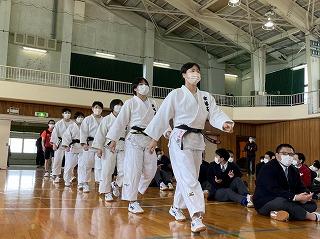 3月10日(木)の校内フリースロー・ダンス大会終了後に、生徒会報告会・壮行式・令和4年度前期生徒会役員選挙を実施しました。細心の注意を払って、生徒と生徒の間隔をできるだけ大きくとって、短時間で行いました。