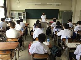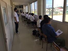 まずは視聴覚室で山本校長の挨拶からスタートです。