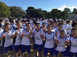 当日は天候に恵まれ、全校生徒が赤・青・黄・桃・緑の5団に分かれて、各団優勝を目指して
