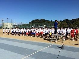 クラスでの朝礼の後、全校生徒がグラウンドに集合しました。