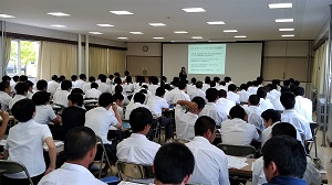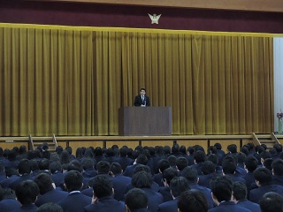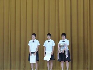 今週火曜日に対面式がありました。1年生は、まだ入学して2日目ということもあり、緊張した面持ちが見られました。初めて2・3年生と対面し、生徒会長の上谷さんが歓迎の言葉を贈り、新入生を代表して、スポーツ健康科学科の赤穂さんと総合学科の丹羽さんがお礼の言葉を返してくれました。