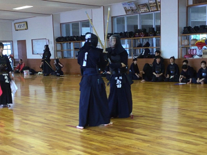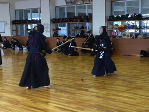 (高校生との練習を通して、中学生が高校でも剣道を続けたいと考えてもらいます。)