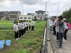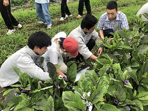 7月16日に「生活支援センター 雪見橋」の方々と、食農・環境教育プログラム(ナスの収穫)を行いました。交流を行ったのは、3年生の「花と緑系列」9名です。昨年度も交流経験があるので、さすが花と緑系列の3年生!!っというくらいテキパキと行動してくれました。