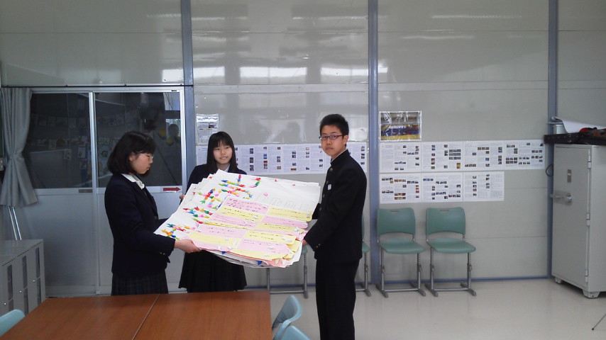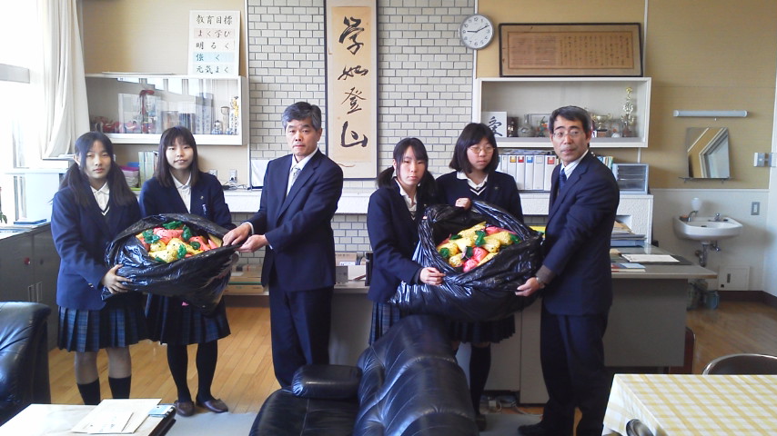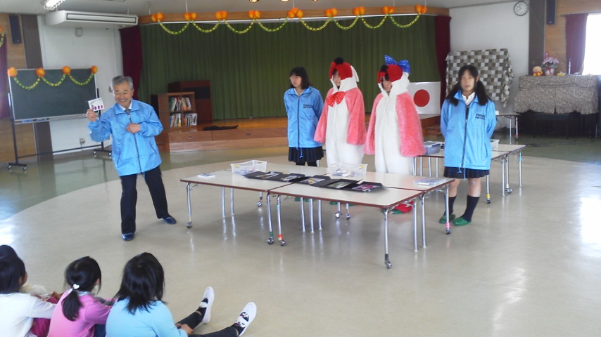 また、南相馬市鹿島小学校、真野小学校でのポン菓子の配布、小高中学校では、ポン菓子の配布と津幡高校生徒からの応援メッセージの贈呈をしてきました。