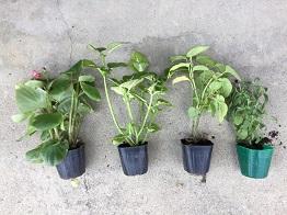 左から順番に、「ベゴニア・センパフローレンス」、「コリウス」、「サルビア」、「ファリナセア」です。