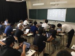 先生方は、真剣です。 授業では、このタブレットを活用して授業を行っていかなければならないのですから。