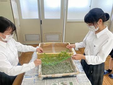 写真は本日のお蚕さんのお世話をしている生徒たちの様子です。お蚕さんも着実に、日々成長しております。「何だか塩昆布みたい」という言葉も聞きました。笑