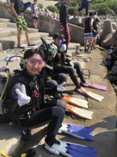 まずは21Hがタンクを背負って海へ向かいました。約40分間のスキューバダイビングをします。fight‼︎