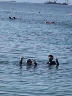 午後は21Hがシュノーケリングと浜辺の散策をしました。ゴリラチョップの岩で記念写真を撮りました!