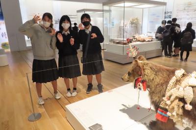 富山空港から飛行機に乗り、新千歳空港まで行きました。飛行機は初めてという生徒も多く、離陸の瞬間は悲鳴にも似た歓声が湧き起っていました。石川県は雨が降っていましたが、北海道は晴天に恵まれ、暖かかったです。