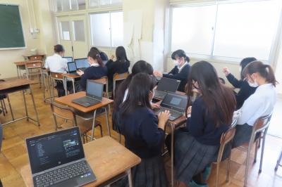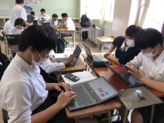 クロームブックを使い、適性診断や上級学校調べ、資料請求を行いました。