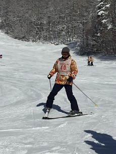 ↓今日も滑ります。 | ↓雪の中での自由滑降となりました。 |