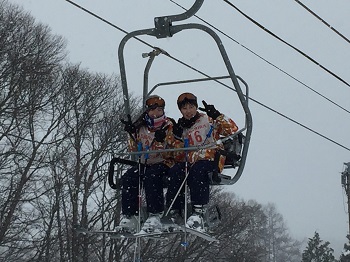 ↓記念写真もパチリ。 | ↓いざゲレンデへ。 |