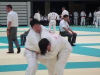 先鋒の桑原が抑込で敗れ、続く次鋒の堀下は合わせ技で一本負け、中堅の林莉が引き分けとなりました。続いて本校副将の遠塚谷と相手次鋒の田中選手、田中選手の送足払で一本をとられ、大将の林弘が引き分けて、3人残しで敗れました。シード校の壁の高さを感じる試合となりました。本大会女子はベスト32で試合を終えました。