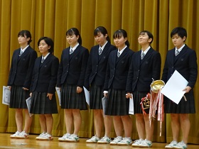 功労賞は、昨年度全国ベスト4、今年度は全国ベスト8に輝いた女子バスケットボール部の5名です。