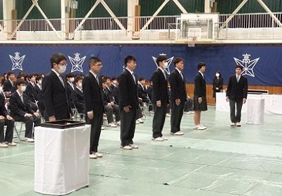 新人大会後の2か月間で獲得した、たくさんの表彰状や優勝旗が披露され、本校生徒の頑張りに大きな拍手が送られました。