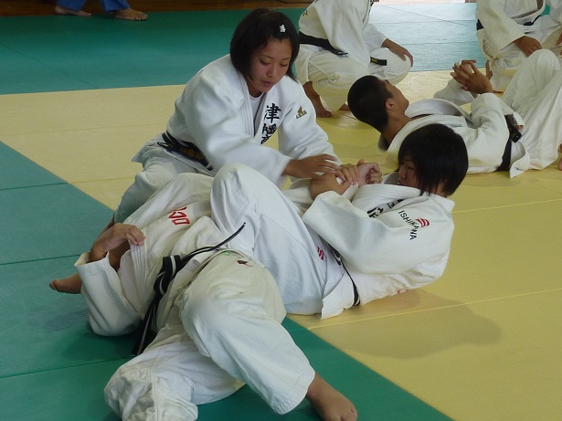 各グループには本校柔道部の生徒がついて丁寧に指導していました。