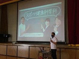 スポーツ健康科学科の教育目標、学科の内容、授業の特徴など15分ほどの説明が行われました。