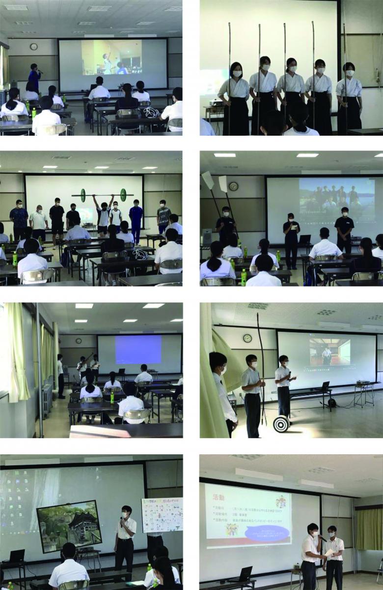 報告会では、今年の1~2月にかけて行われた大会を中心に報告がありました。また、運動部の大会だけでなく、授業中に取り組んだ「俳句」や「明るい選挙啓発標語コンクール」で受賞したという報告もありました。