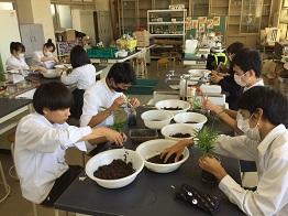 授業は「草花」という授業で、総合学科園芸系列の生徒たちが学んでいます。