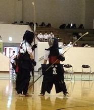 午前中は予選リーグが行われました。予選2試合目では5人の試合で勝敗が決まらず、代表戦までもつれこみました。しかし、主将で大将の横山が迷いなく代表戦に出場し、面を一本決めて勝利を収めることができました。