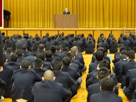 写真右は始業式です。石倉校長は「継続して努力すること」の大切さをお話しされました。