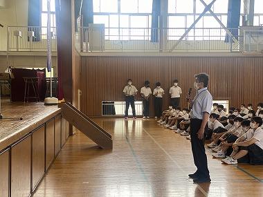 全ての学年が一同に揃って集会を行うのは、昨年度の文化祭以来初めてということもあり、新型コロナ感染予防対策を徹底した上で行いました。