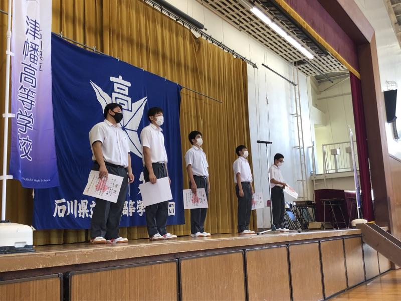 5月20日(木)、1学期中間試験終了後に、生徒会報告会(表彰伝達式)と石川県総合体育大会・総合文化祭壮行式を実施しました。