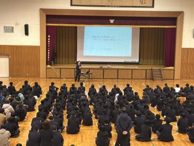 12月3日(水)新人戦報告会終了後、津幡警察署交通課の山本様にお越しいただき、来年度4月より施行される新しい道路交通法についてお話いただきました。