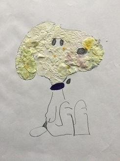 前回もお話ししたとおり、下絵にスティックのりをつけ、その上に押し花を並べていきます。