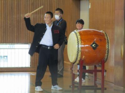 生徒会 東大吾君から激励の言葉 続いて釜田学校長より激励の言葉