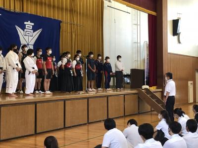 終業式の前に、北信越大会で好成績を収めたたくさんの部活動の報告会、そしてこれからインターハイに出場し、全国の舞台で戦ってくる部活動の壮行式を行いました!!!