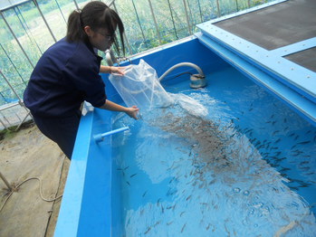「ホンモロコ放流」 8月28日にホンモロコを放流しました。 校内の水槽に3000尾を放流し、市谷田んぼ塾に2000尾放流します。 合わせて5000尾のホンモロコを養殖します。 大きくなったホンモロコはトキのエサやドジョウ代わりの食材にする予定です。 大きく育ってほしいです。 ホンモロコを食べてトキが大きくなってくれれば私たちもうれしいです。 校内水槽への放流 |