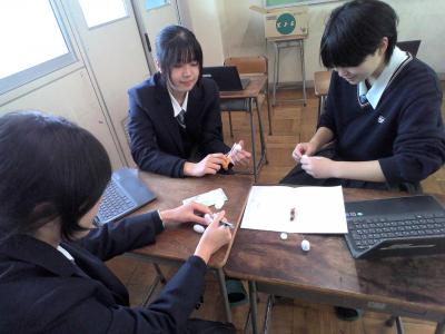 ↑繭を生かしてどのような人形が出来るか考える生徒