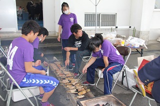 朝は晴れていたのですが、次第に雨模様となりました。外で調理をしている保護者の方は少し寒かったかも知れません。