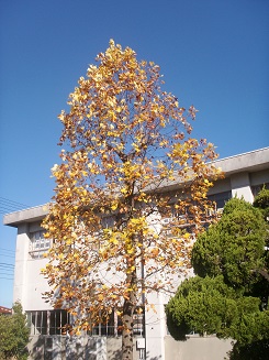 学校正面にこの春植えた桑の木もいつのまにか葉を落とし、冬支度に入っていました。