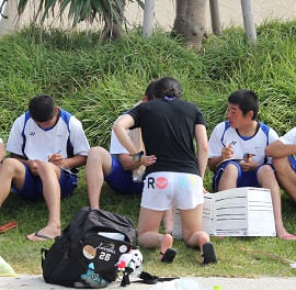 でも大半の生徒は、食事の時間も惜しんで海に飛び込んだり、貝やサンゴの破片を集めています。